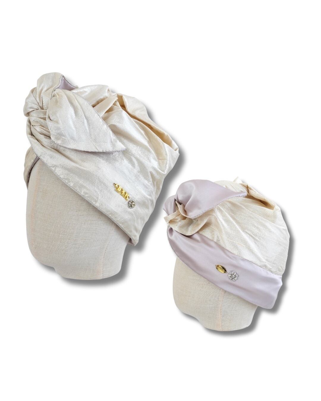 → ターバンの光沢が、シンプルな日常コーデを一気に垢抜けさせます。