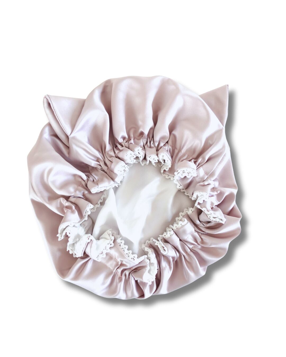 8歳〜大人用 Cat-Ear Ivory Gray(キャットイヤー)猫耳パイピング・Romantic Race Cat-Ear pink Nightcap国産洗えるシルク