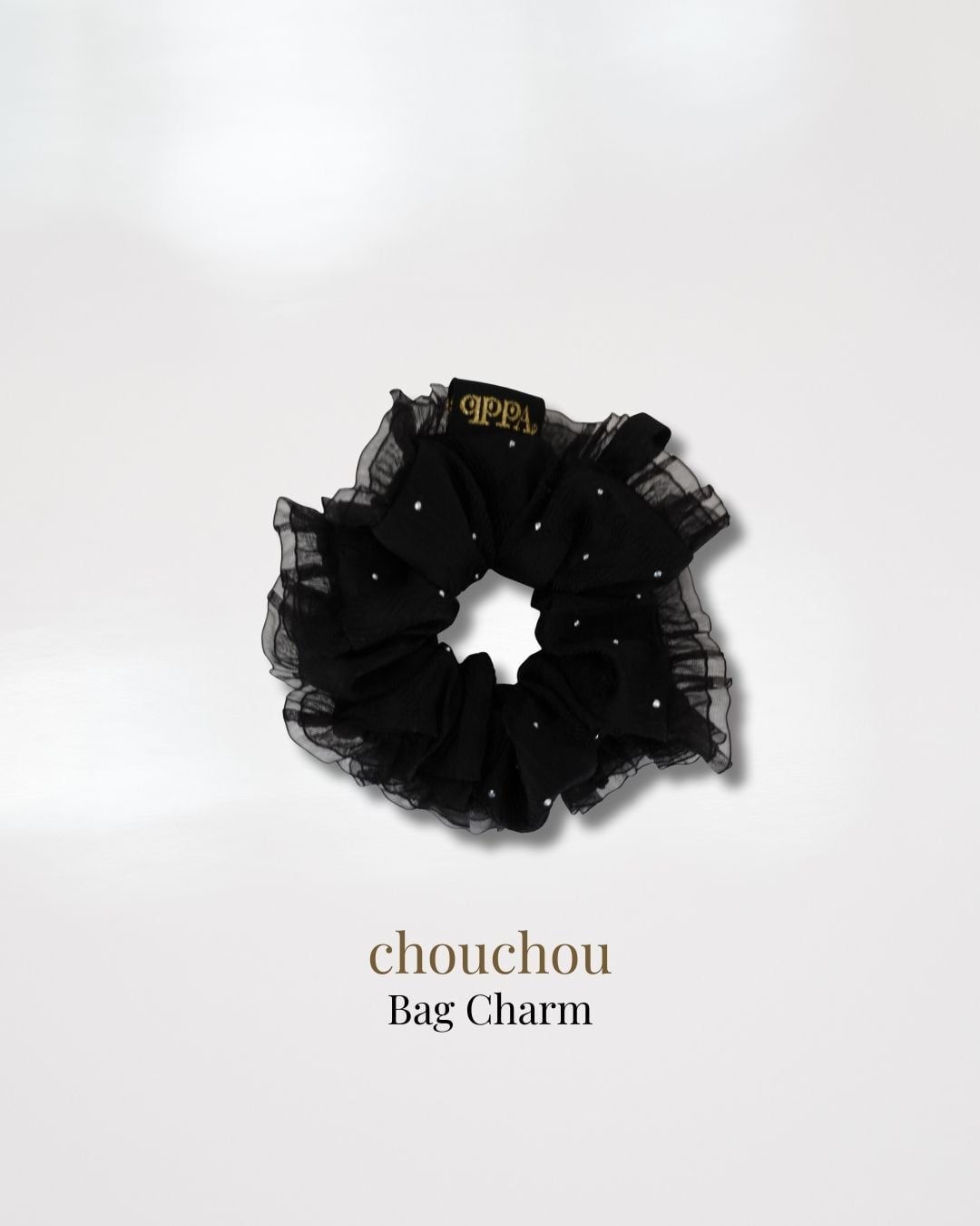 【バッグチャーム仕様】12cm Black Lace &Bag charm(ブラックレース&バッグチャーム)Round Lace Big Chou Chouラウンド・レース・ビッグ・シュシュ