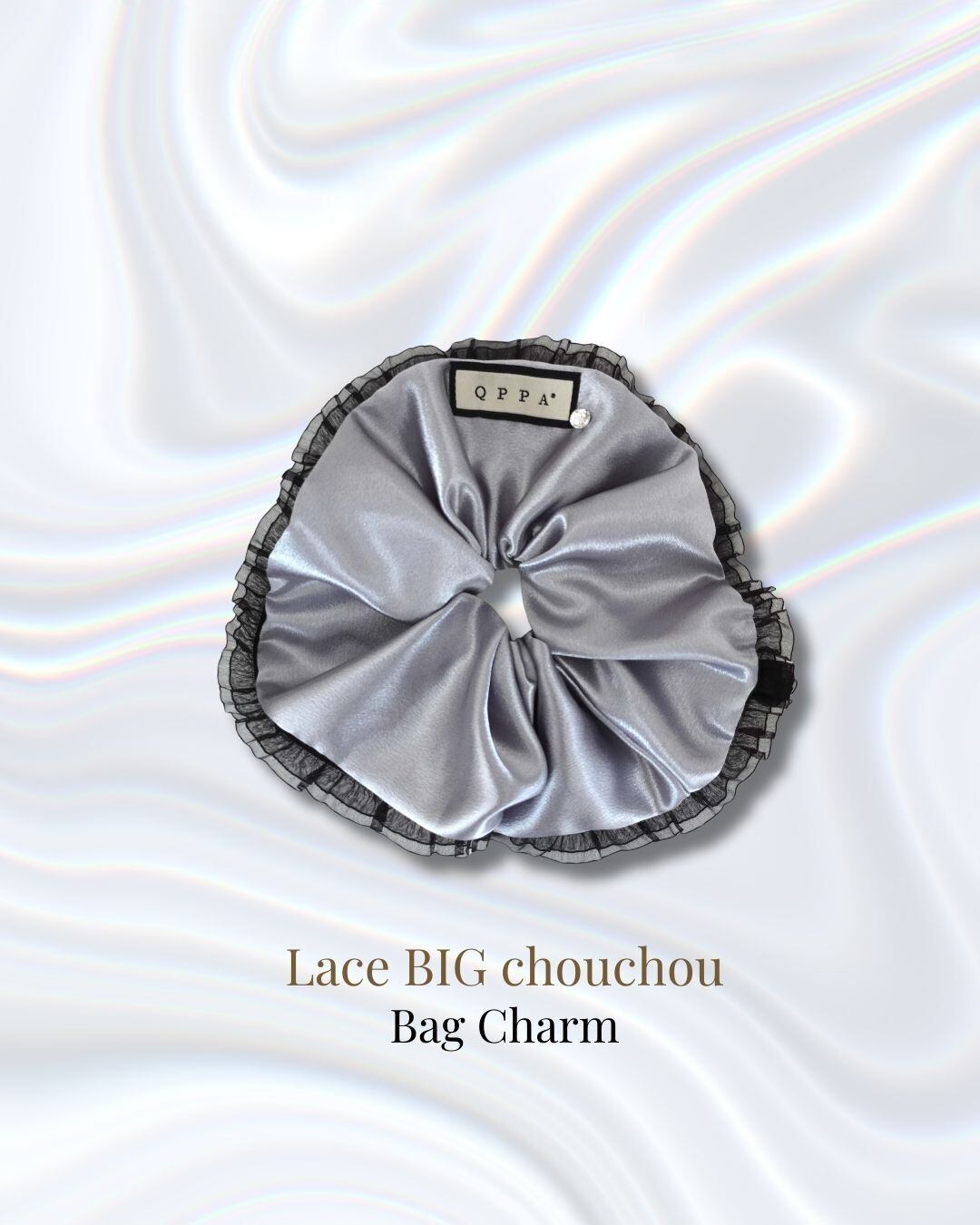 【バッグチャーム仕様】22cm Silver × Black(シルバーブラックレース&バッグチャーム)Round Lace Big Chou Chouラウンド・レース・ビッグ・シュシュ