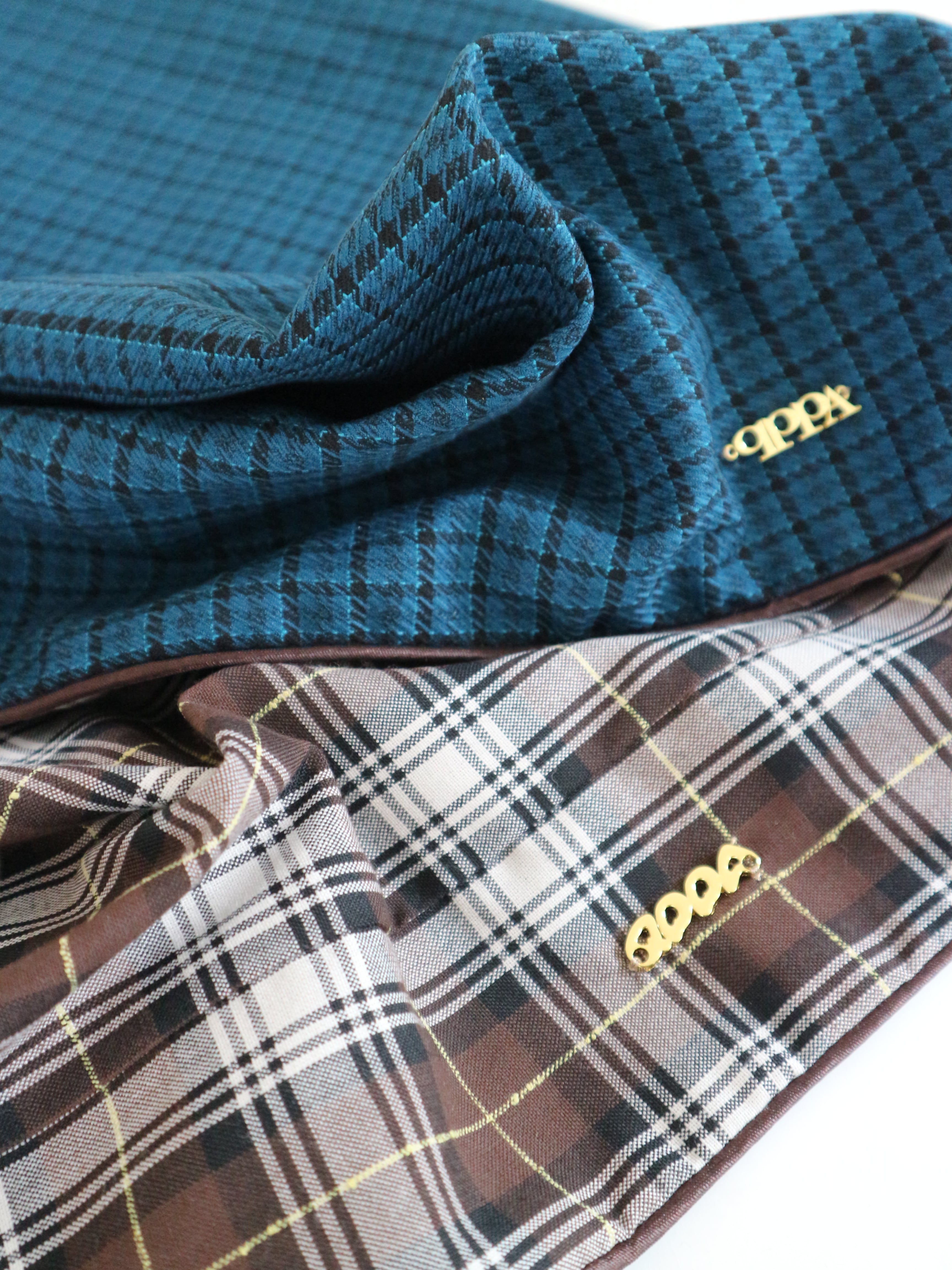 ブラウンやカーキなど、落ち着いたトーンのチェック柄生地を2種類使用しご用意。
