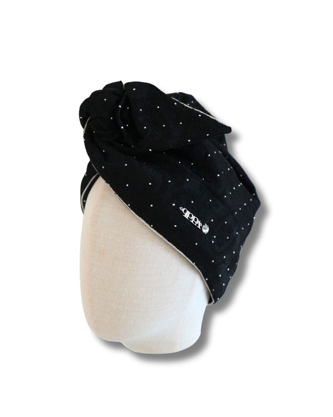 夜空のようにきらめく、繊細なラインストーンを散りばめたヘアラップ。