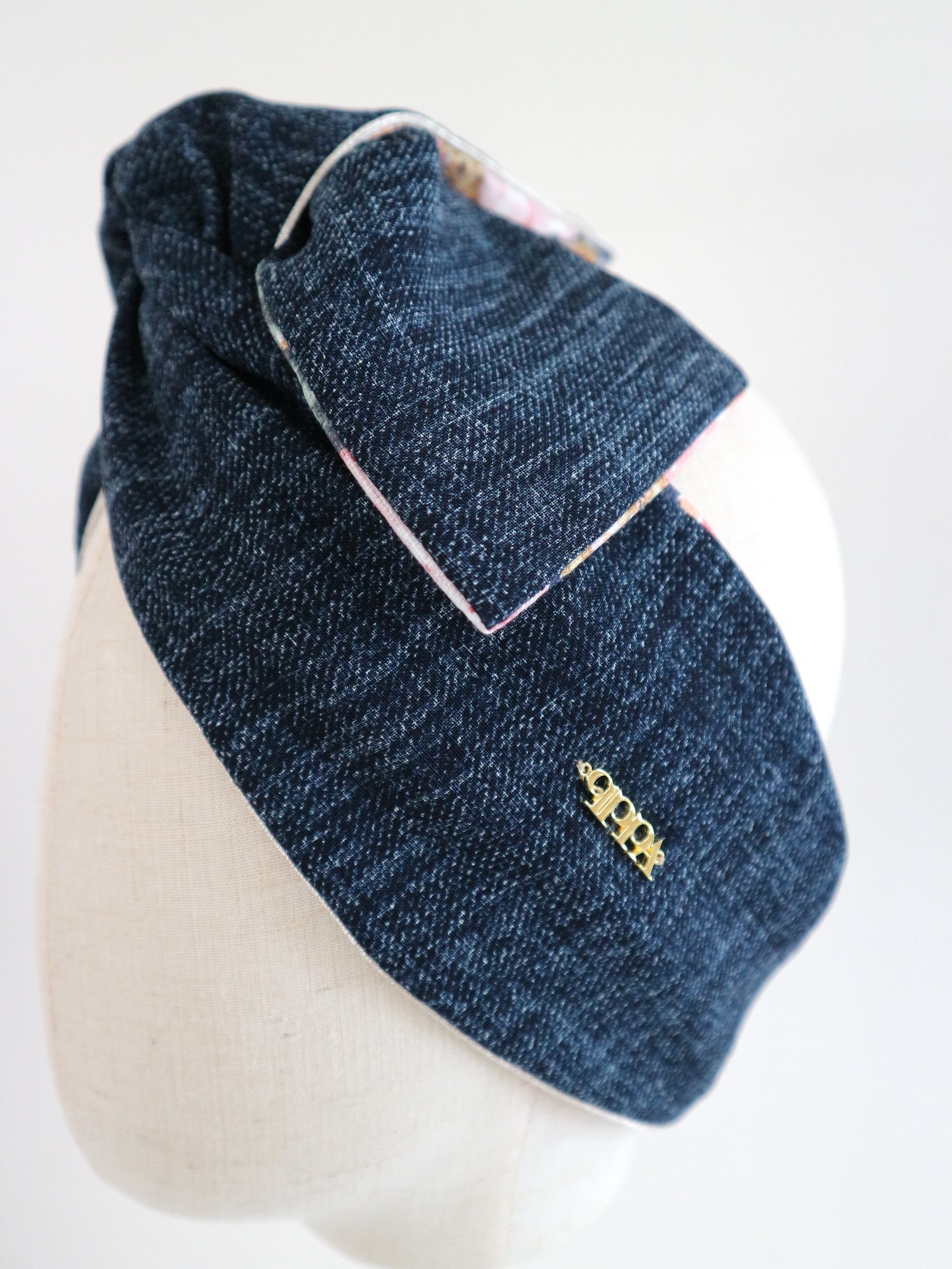 クラシカルなフラワープリントと、透け感のあるシースルーデニムを組み合わせた、qppA®︎オリジナル型リバーシブルターバン。