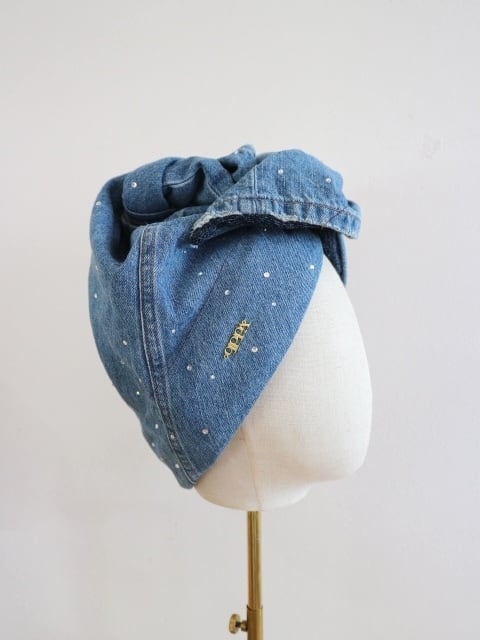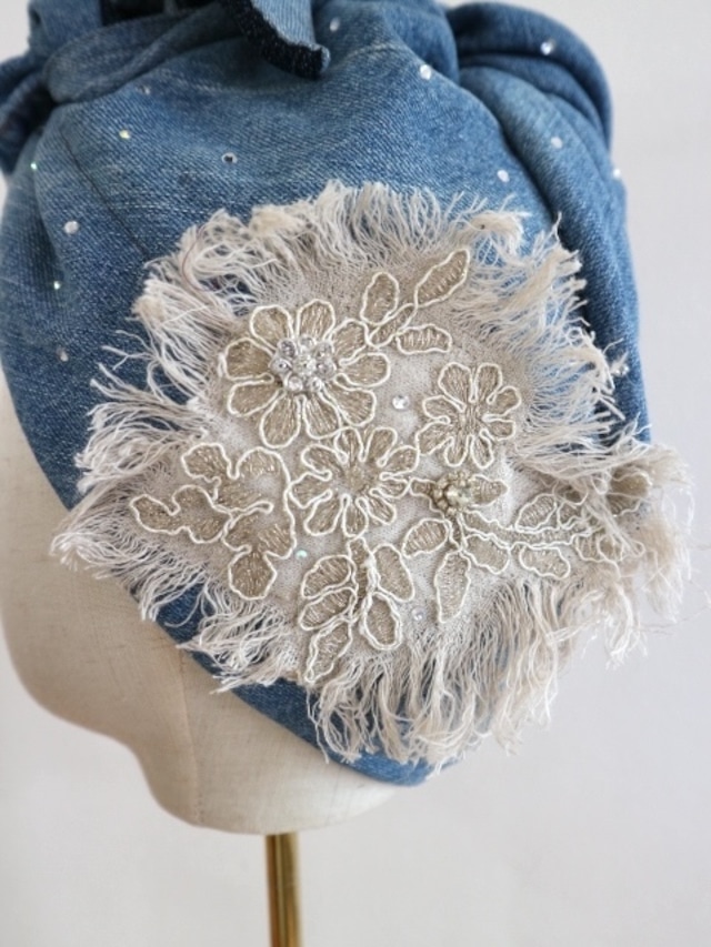 限定1点 ヘアラップ Upcycled Denim × Handcrafted Lace Patch Hair Wrap