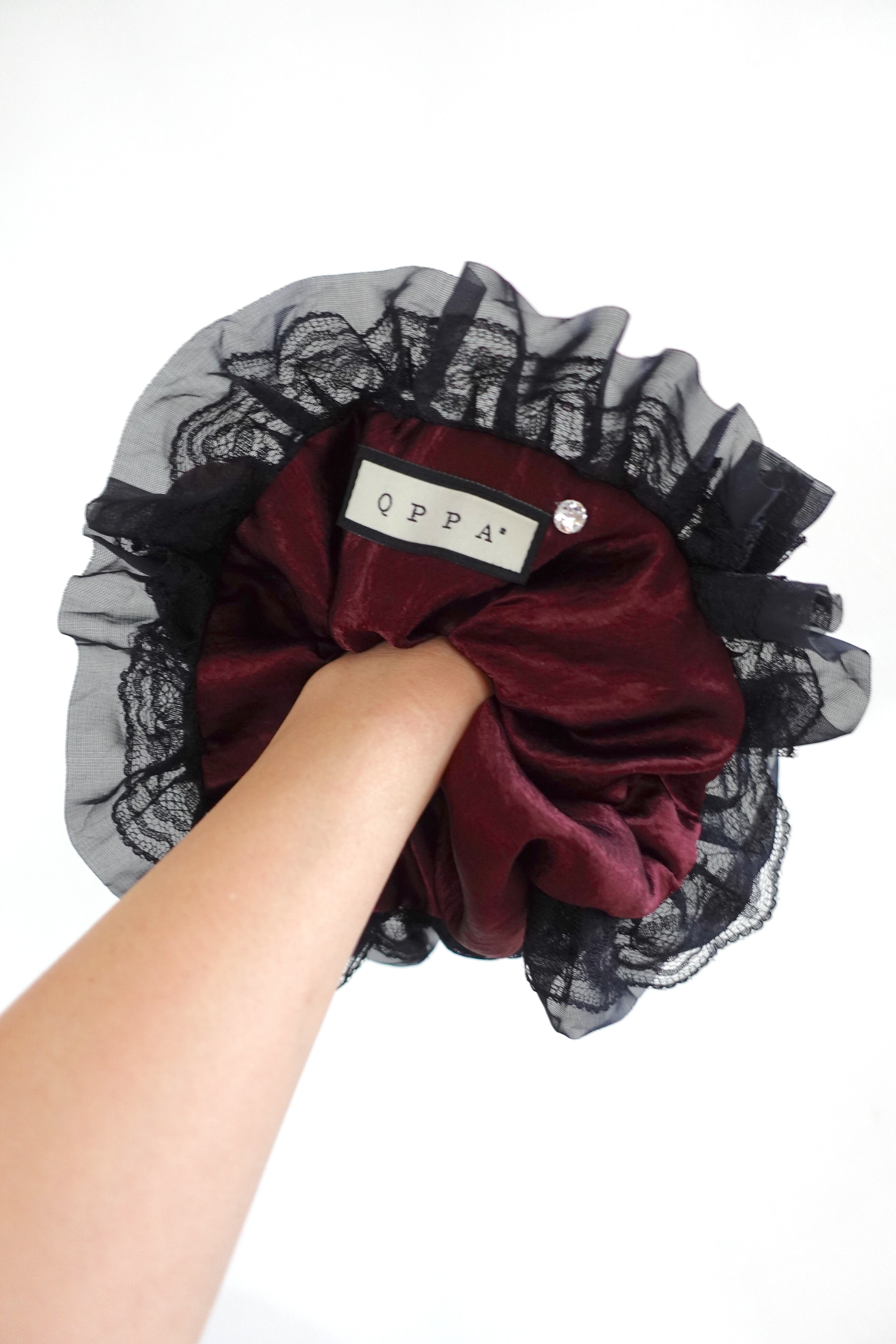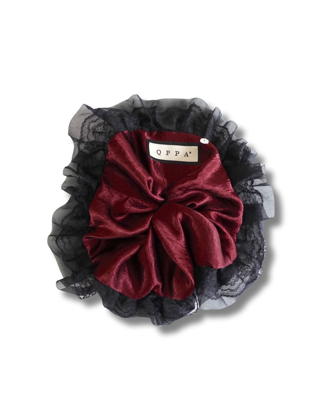 サステナブルな国産アセテート生地を使用した、 クラシカルで華やかなシュシュ。 深みのあるワインレッドに、繊細なブラックレースを重ね、 上質でエレガントな印象に仕上げました。 ヘアアレンジにはもちろん、 手首に纏えばジュエリーのような存在感を放ちます。 バッグチャームとしても使える、実用性の高い一点です。 特徴 サステナブル国産アセテート(ワインレッド) 繊細なブラックレース重ね仕様 バッグチャームの金具は別売り 約20cmサイズ(ボリュームタイプ)