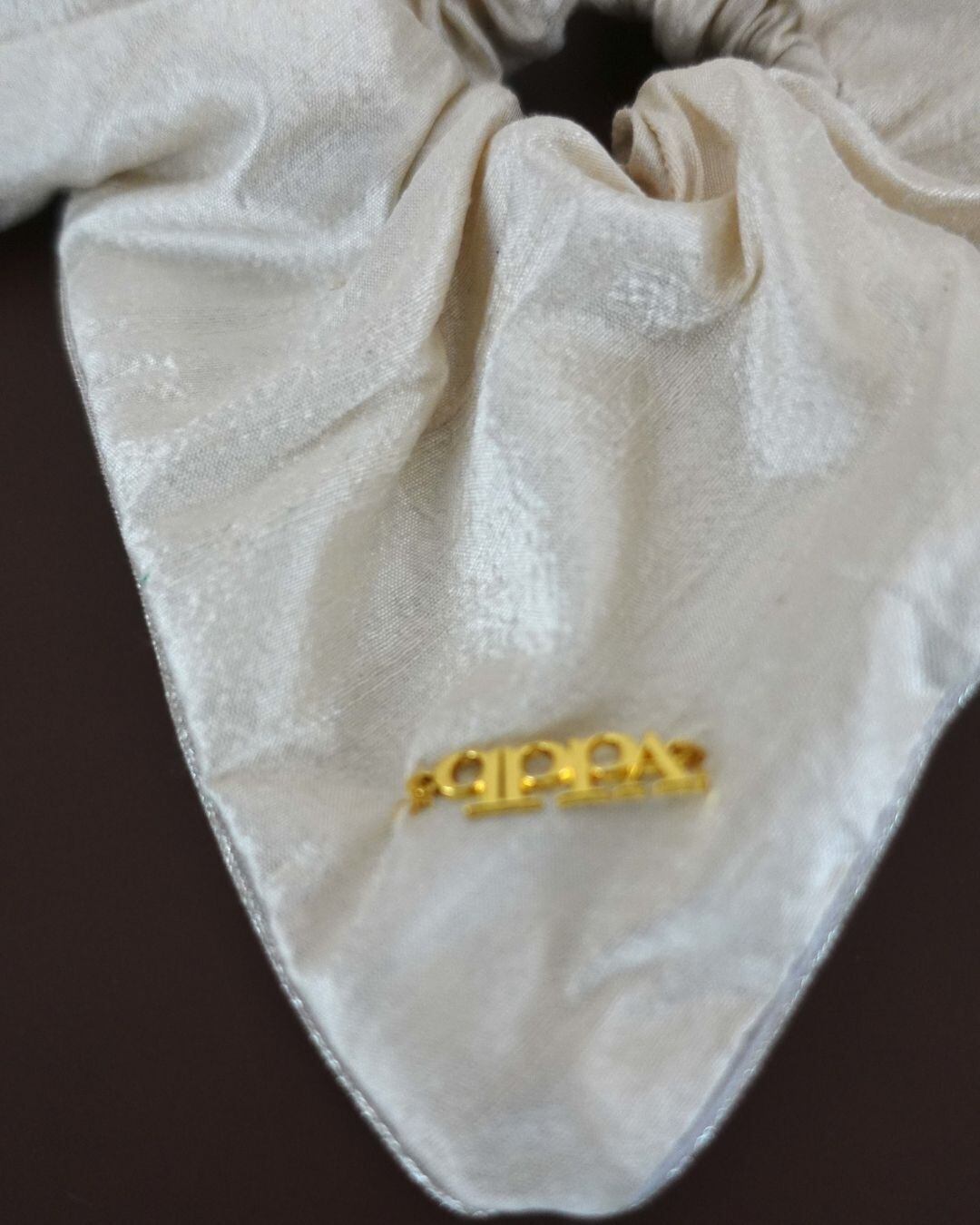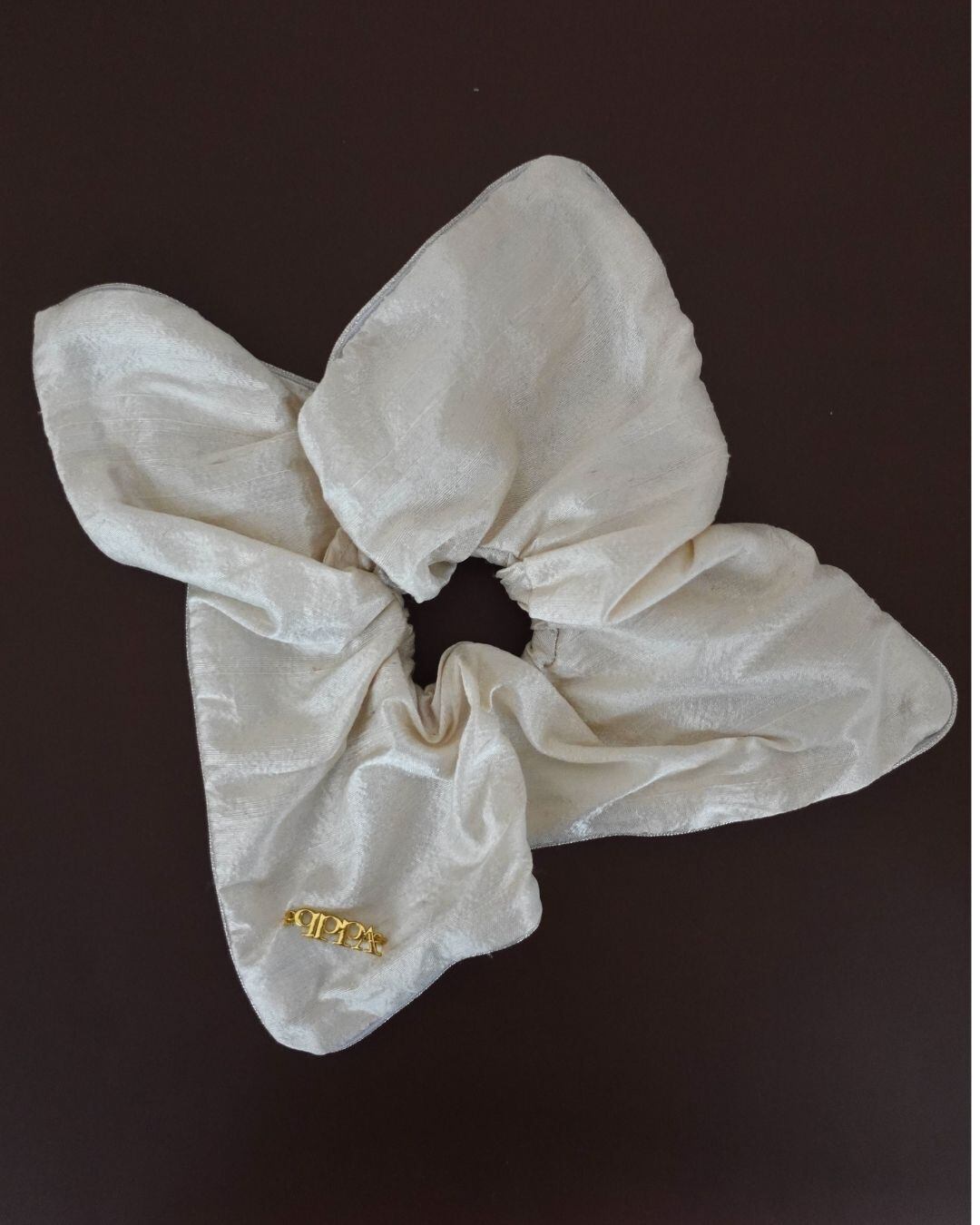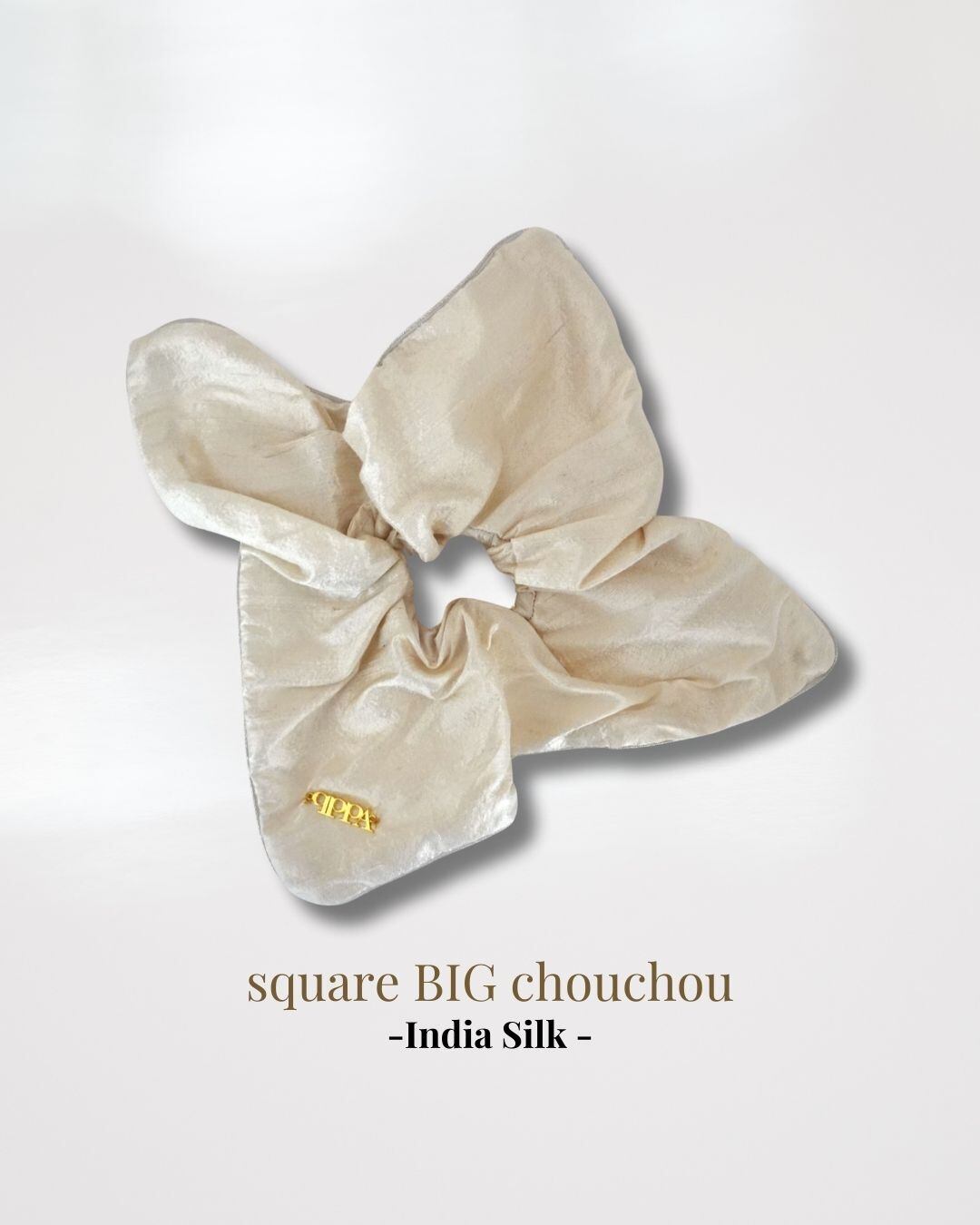 高級感漂うインドシャンタンシルクで仕立てた、スクエア型のビッグシュシュ。