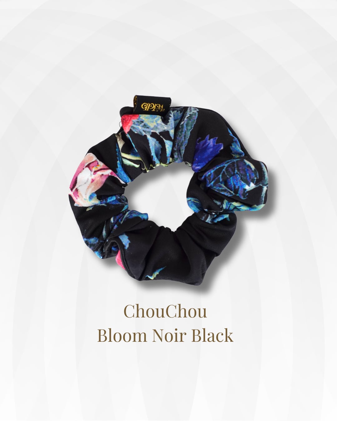 Kyo Printのテキスタイルを使用したシュシュ。