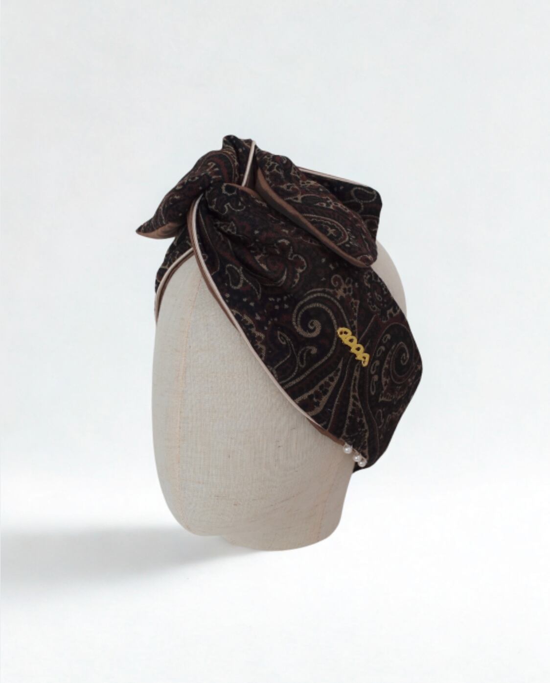 ペイズリーの柄が顔まわりを華やかに引き立て、