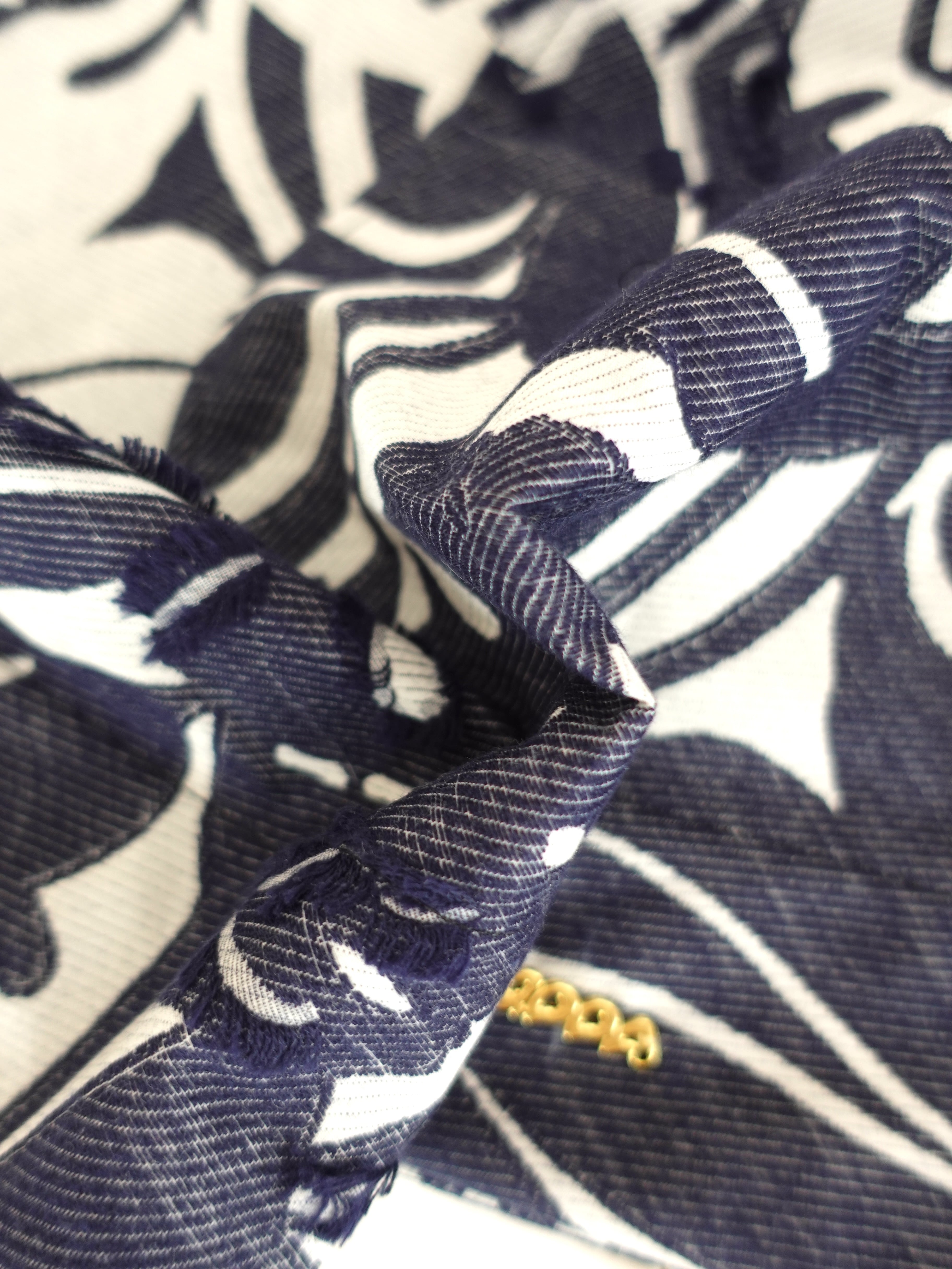 ボタニカルモチーフをカットで表現したほつれ感が、無造作に纏っても絵になる、自然な立体感を生みます。
