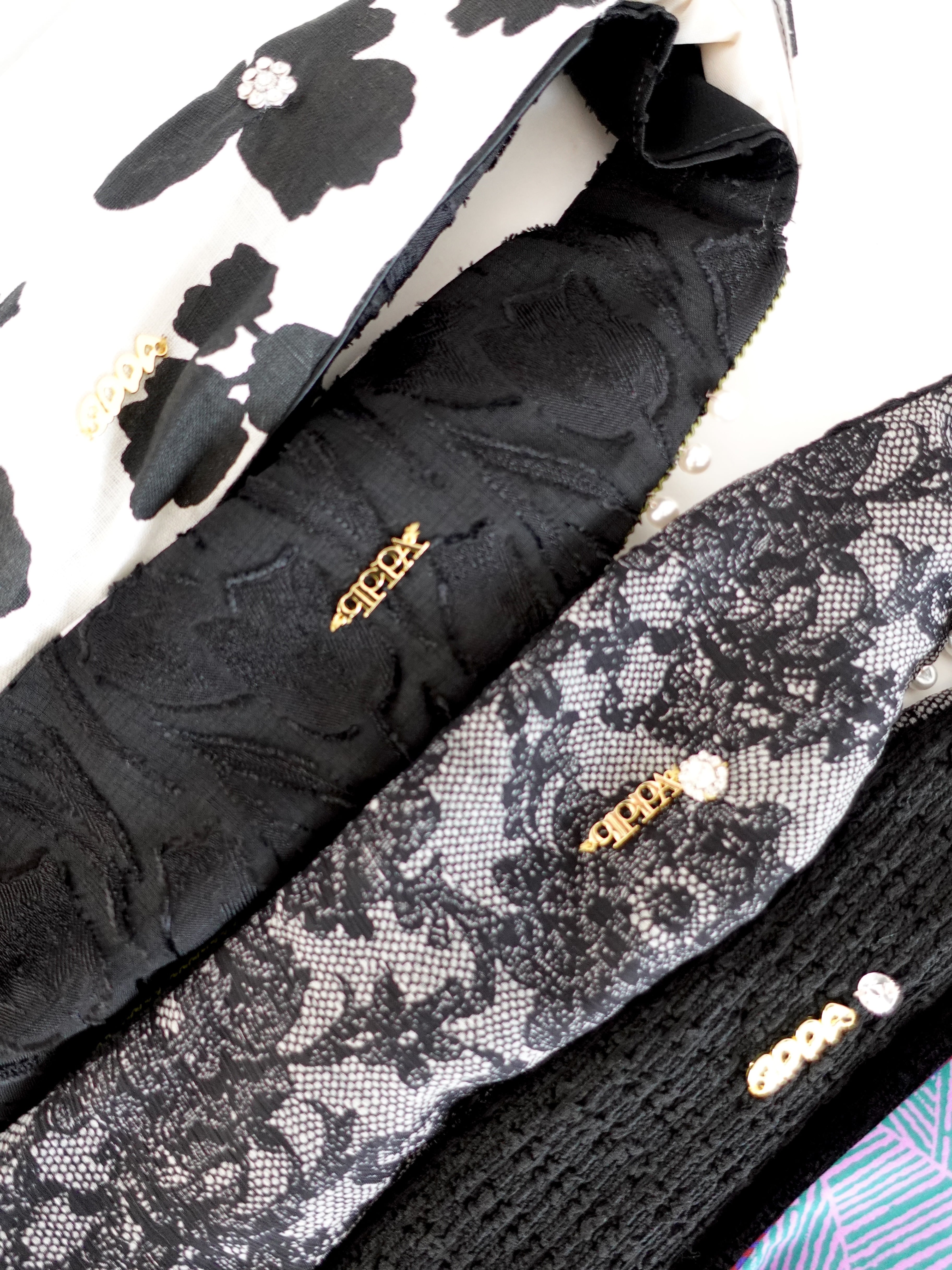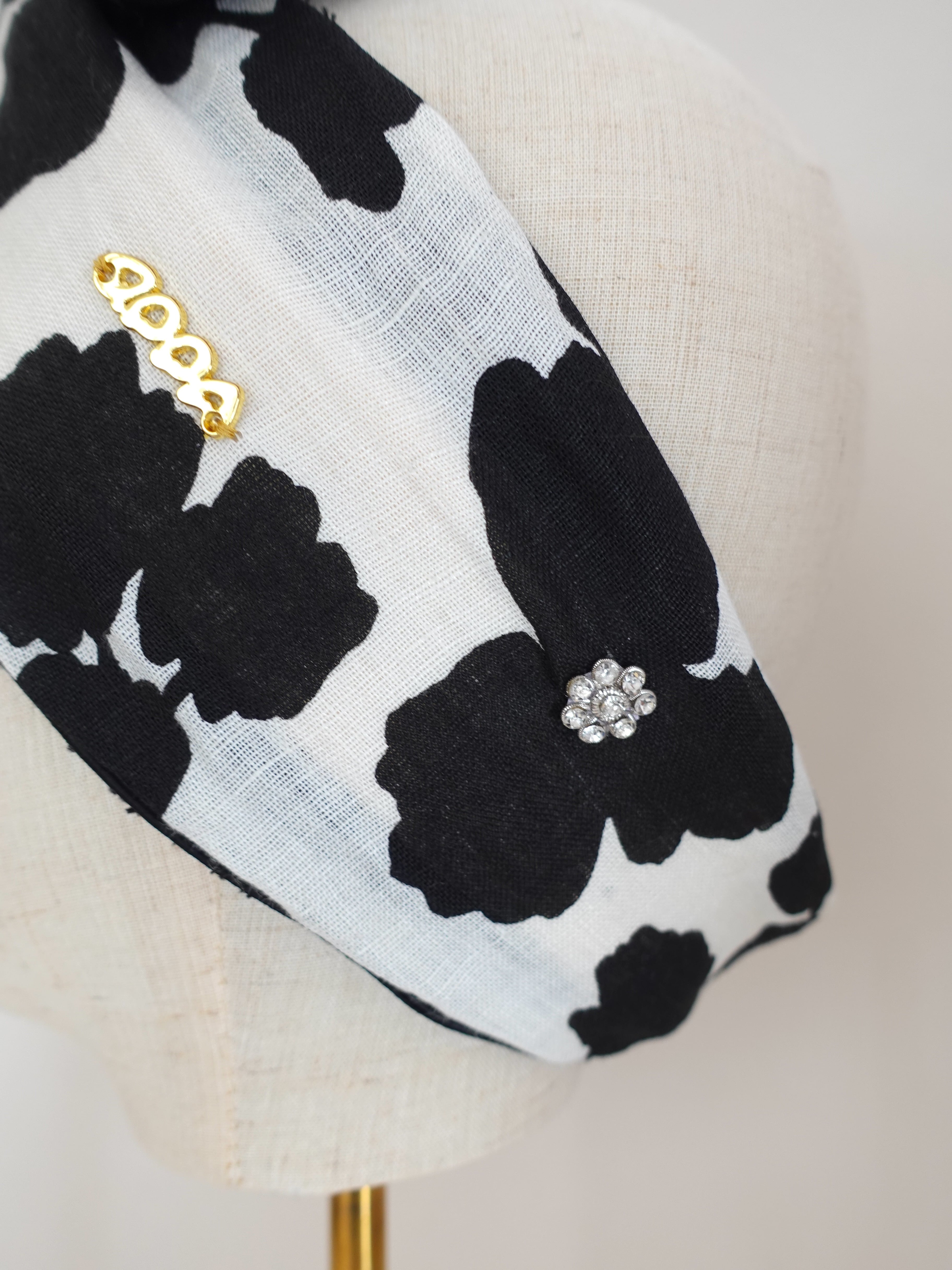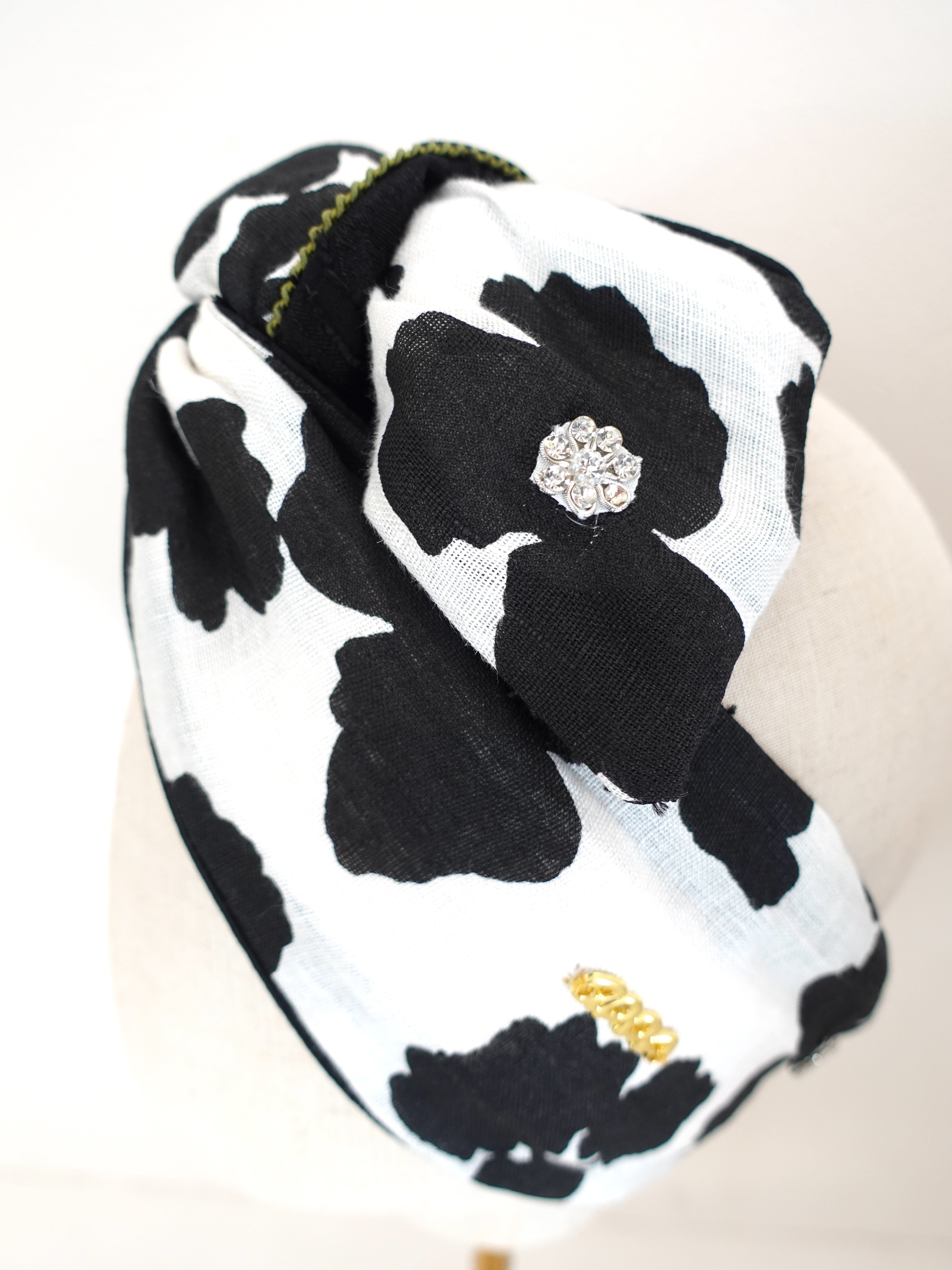 素材:国産リネン(白黒花柄)× 黒花柄ポリエステルル