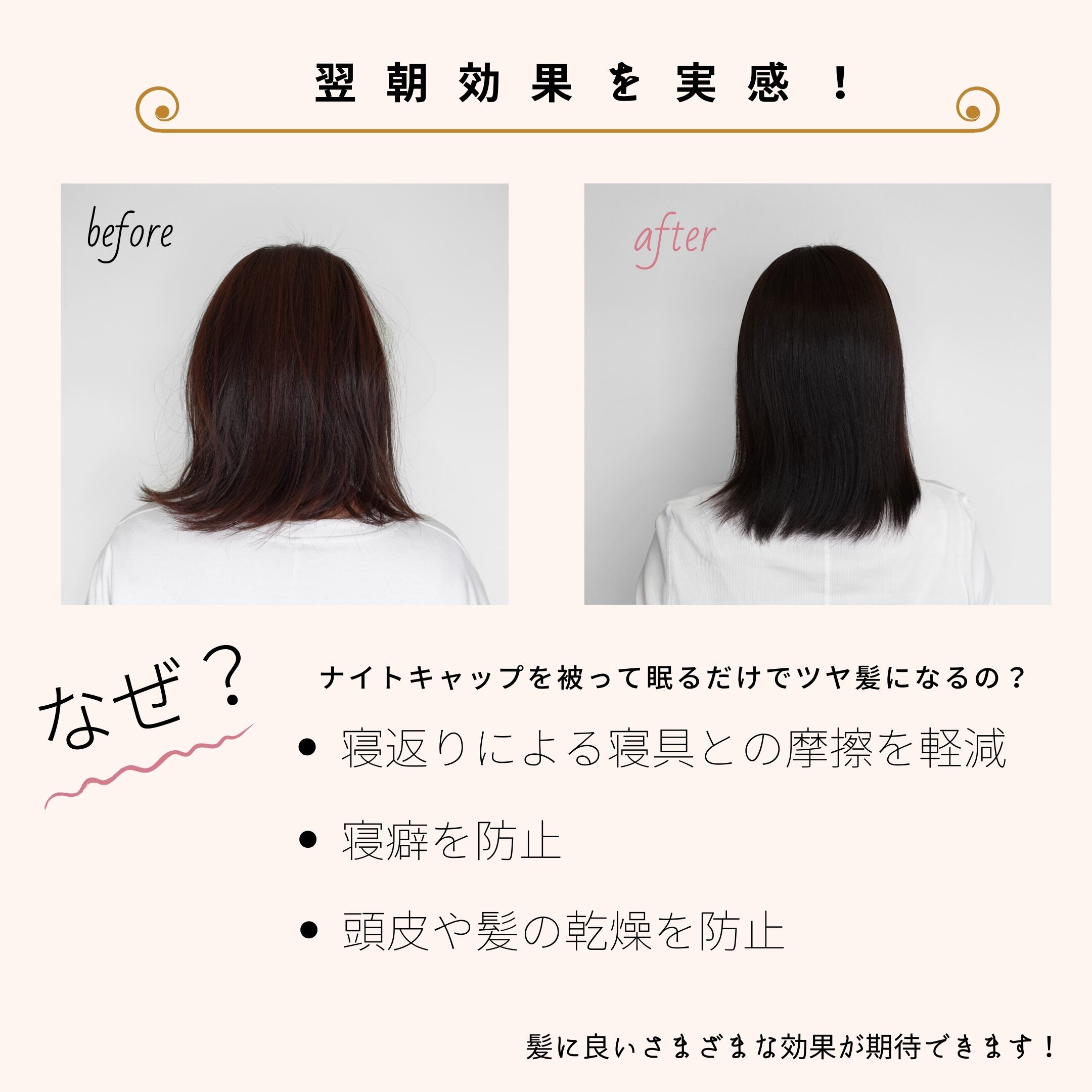 ●髪をすっぽり入れ込む事で 寝癖とヘアセットの時間減少し お顔周りに髪がまとわりつかない事で 安眠効果をもたらします