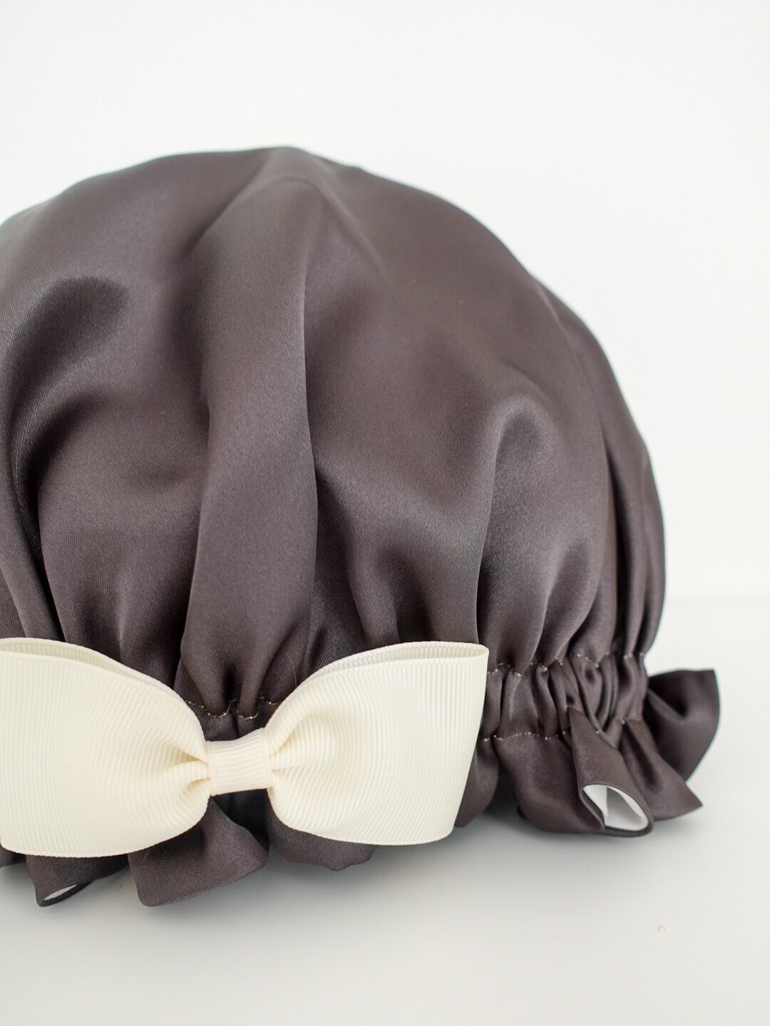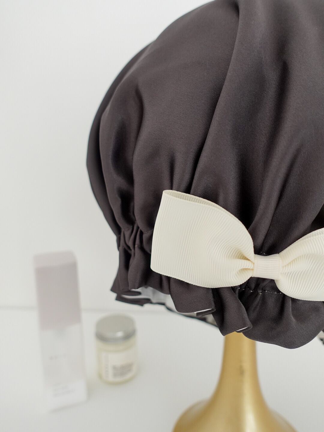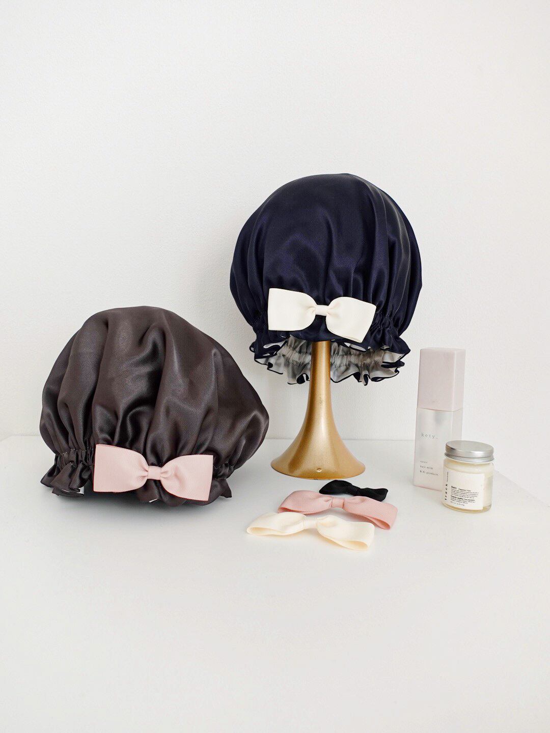 選べるリボンsilk nightcap khaki国産洗えるシルク