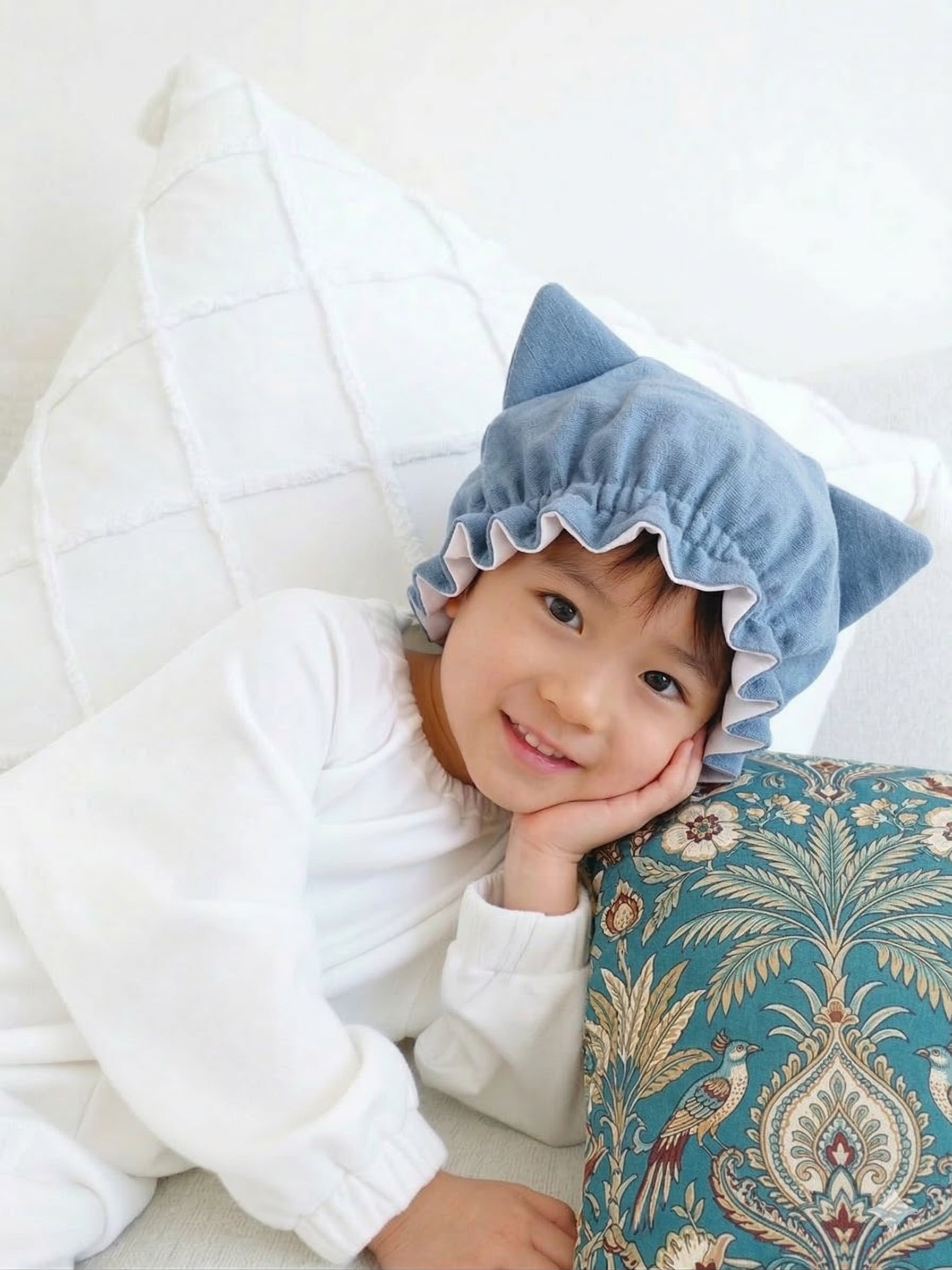 【 2歳〜7歳用ナイトキャップ国産洗えるシルク 】 ※着用モデル6歳