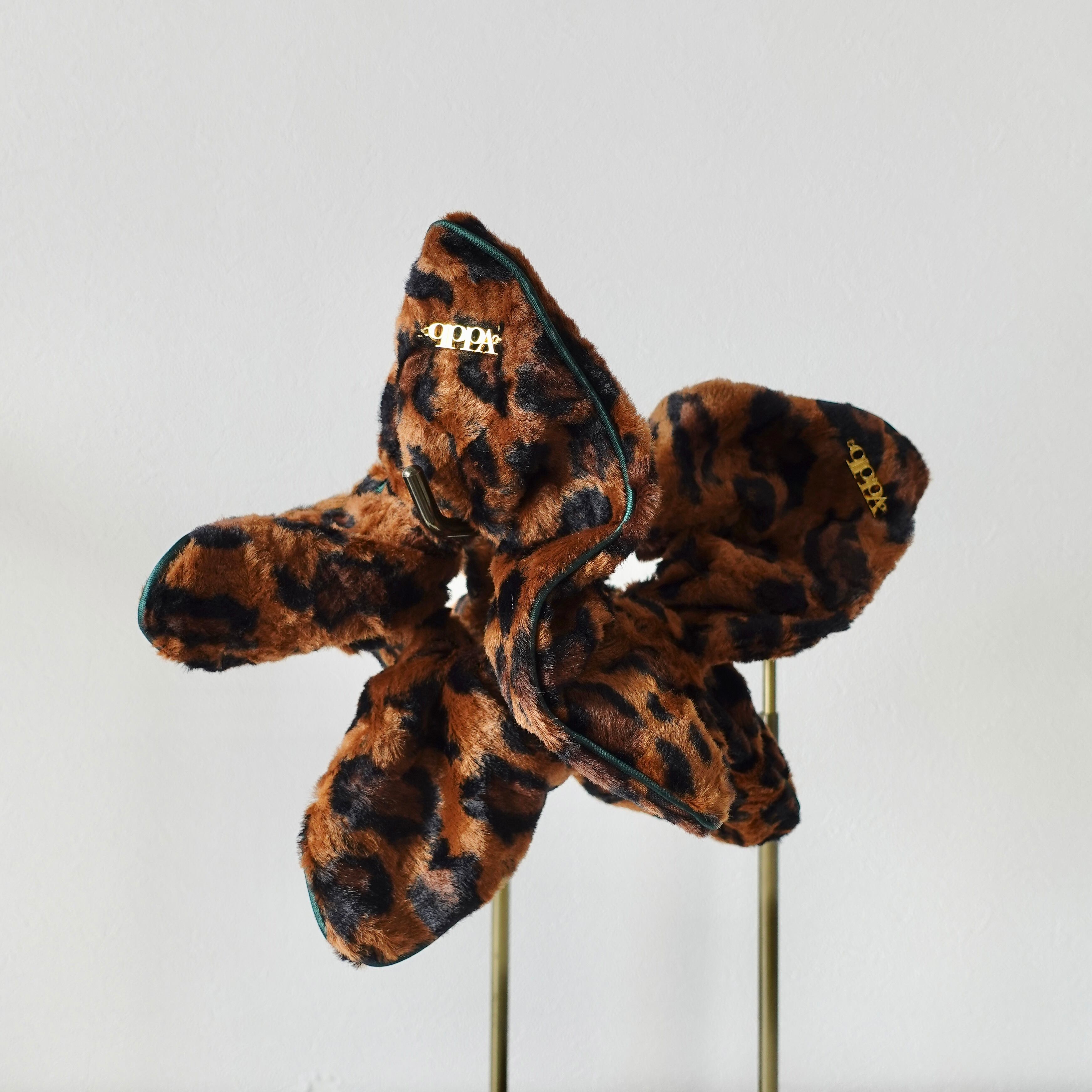 ■square big chouchou|スクエアビッグシュシュ|レオパード×モスグリーンパイピング