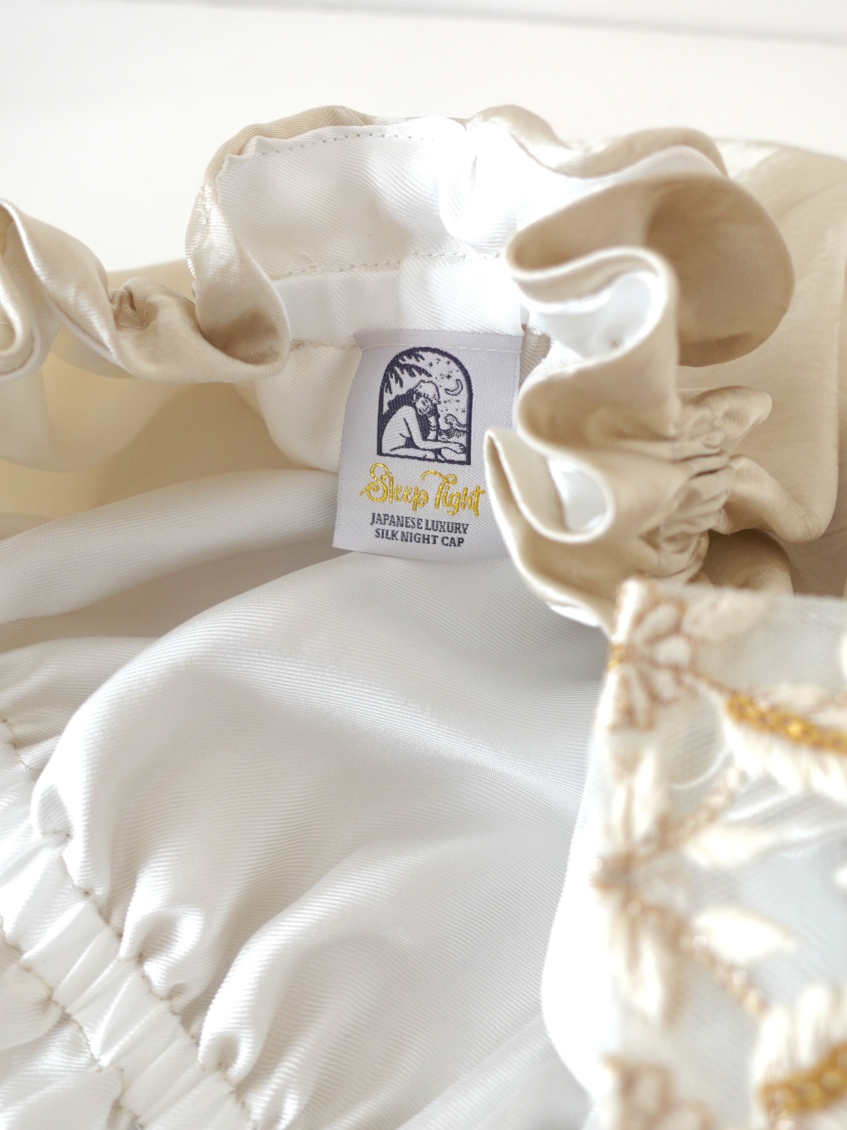 【サスティナブル】silk nightcap handmade india ribbon ヴィーナスベージュ国産洗えるシルクナイトキャップ