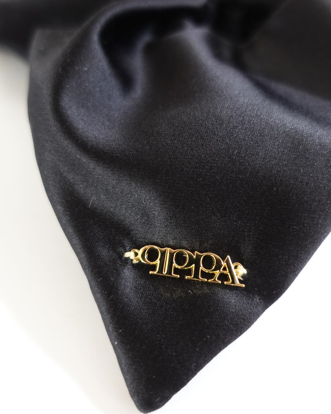 軽やかで通気性のあるシルクポリエステル素材で仕立てた、qppA®︎オリジナルのスクエアシュシュ。