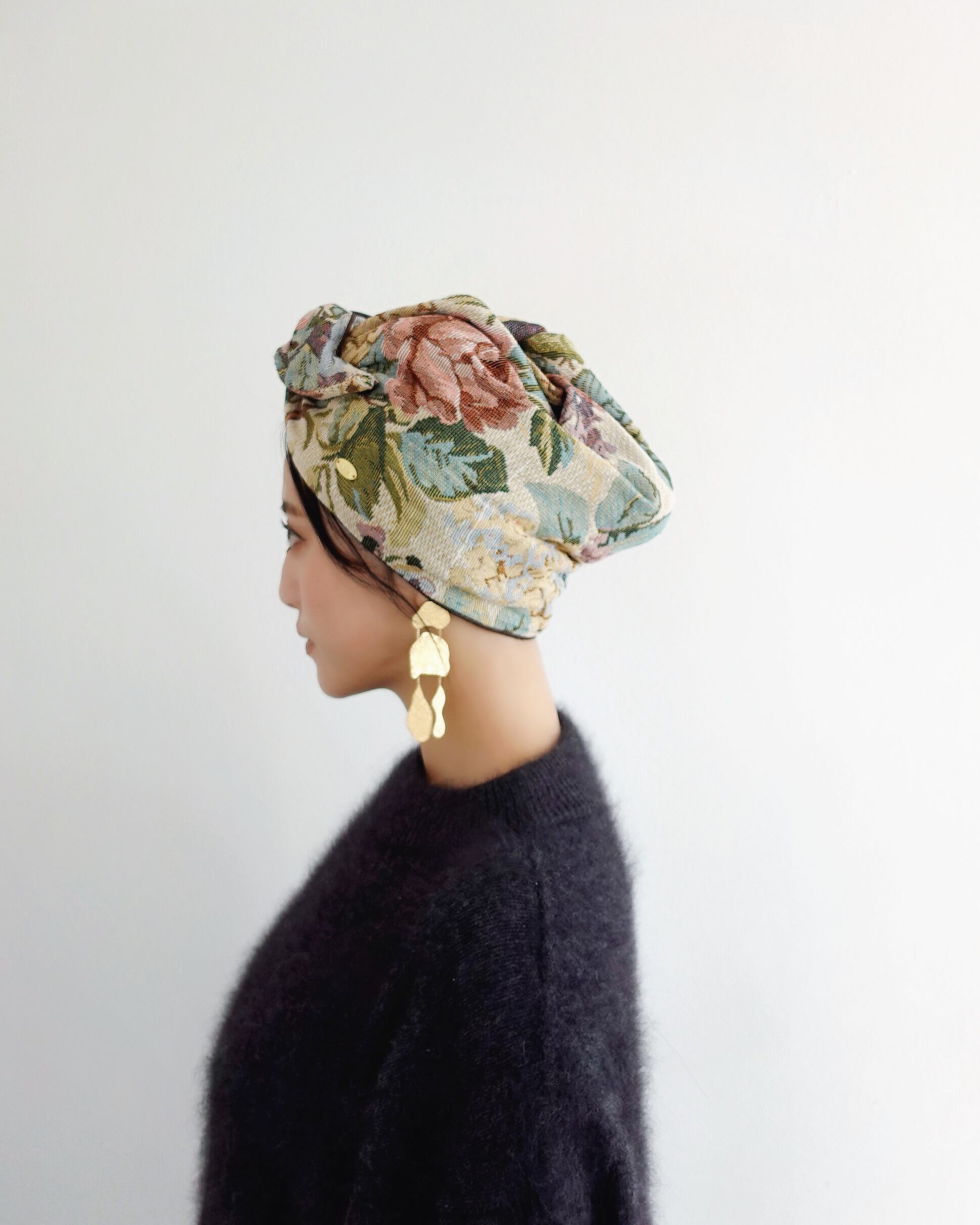 リッチな雰囲気もありながら柔らかな質感と軽やかな仕立てが、ターバンとしての使いやすさを叶え、デイリーからフォーマルまで幅広いシーンで活躍します。